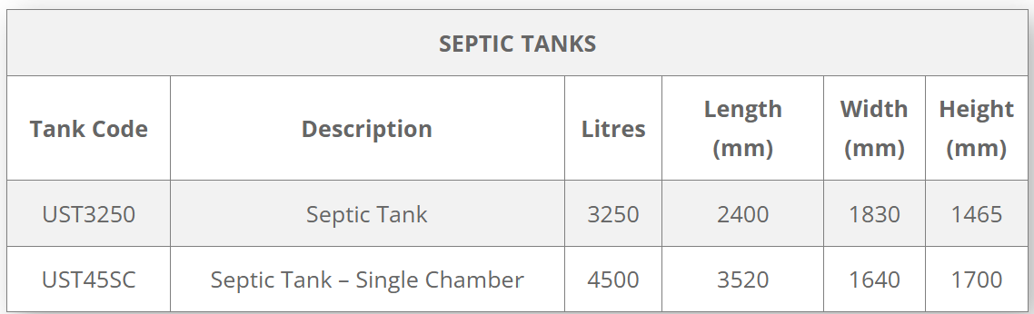 Septic: 3,250 L → 4,500 L